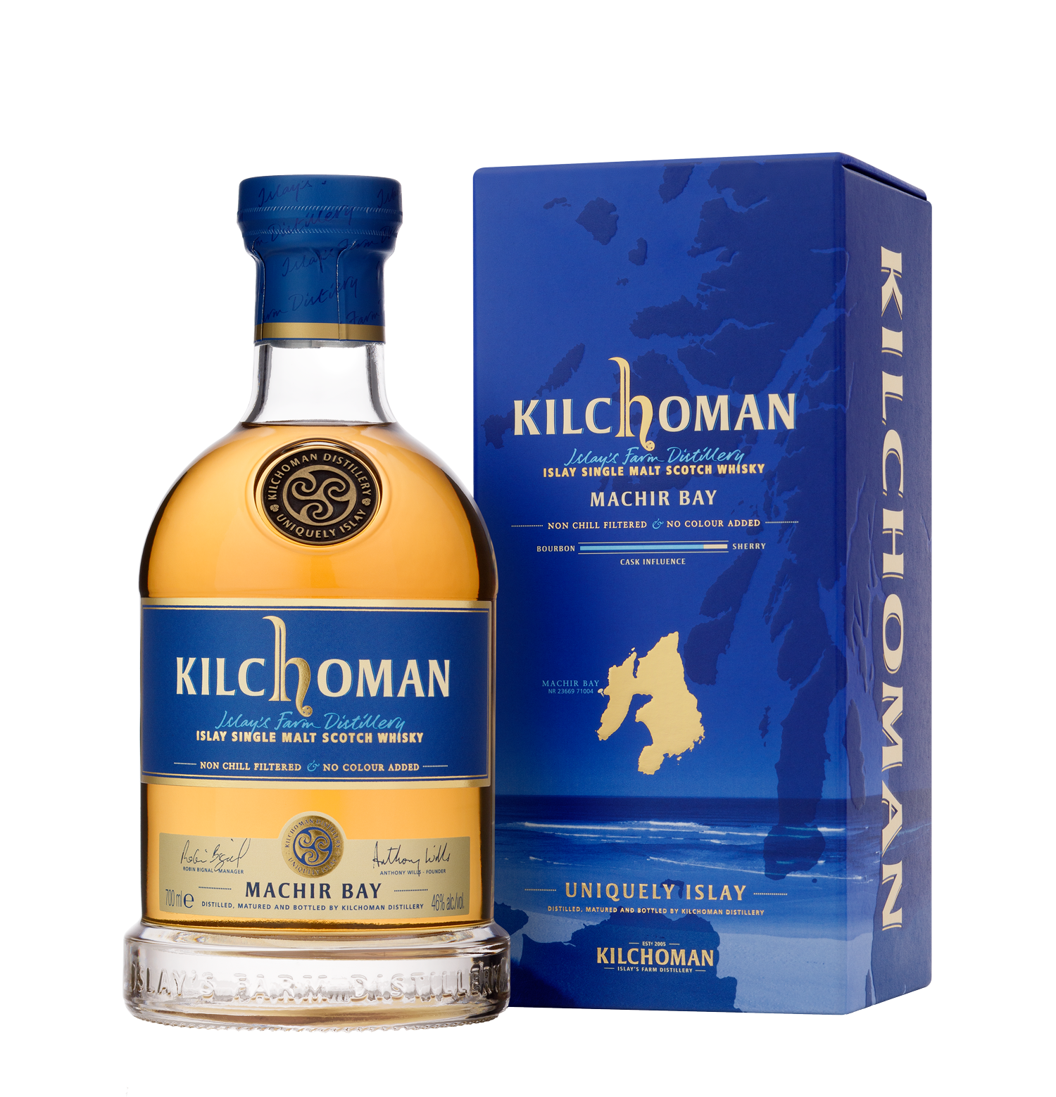 Machir Bay, our signature peated single malt, is a vatting of Kilchoman matured in both bourbon and sherry casks. Named after Islay’s most spectacular beach, the high proportion of bourbon barrels create a distinct balance of classic Islay character and fresh floral complexity.